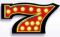 Você também verá cinco 7s coloridos nas bobinas. Estes são os símbolos mais valiosos em jogo. O Red 7 com luzes piscantes é o mais valioso, resultando em uma vitória de 500 moedas se você receber 5 do tipo. O próximo símbolo mais valioso é o Blue 7 com luzes, você também pode encontrar 7 anos verde, amarelo e rosa.