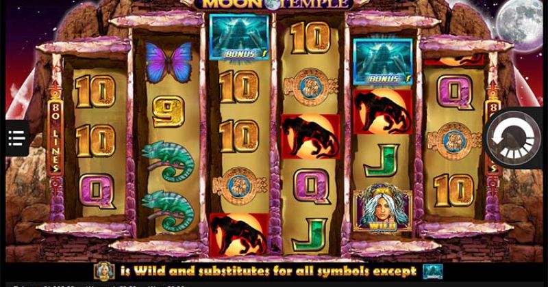 Moon Temple é um slot de vídeo único com 6 rolos e a sequência de fileiras: 3, 4, 5, 5, 4 e 3. oferece 80 linhas de pagamento e tem uma aposta mínima de PTD 0,50 e um máximo de PTD 125. Nada é lunar sobre O tema, então provavelmente se refere a um antigo templo peruano próximo a Machu Picchu.