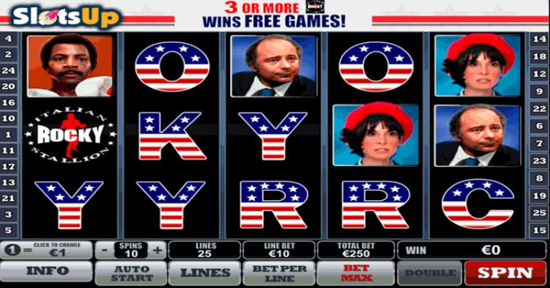 O símbolo selvagem não é animado, mas Rocky entrega alguns ko na rodada de bônus. Definitivamente vale a pena a peça.